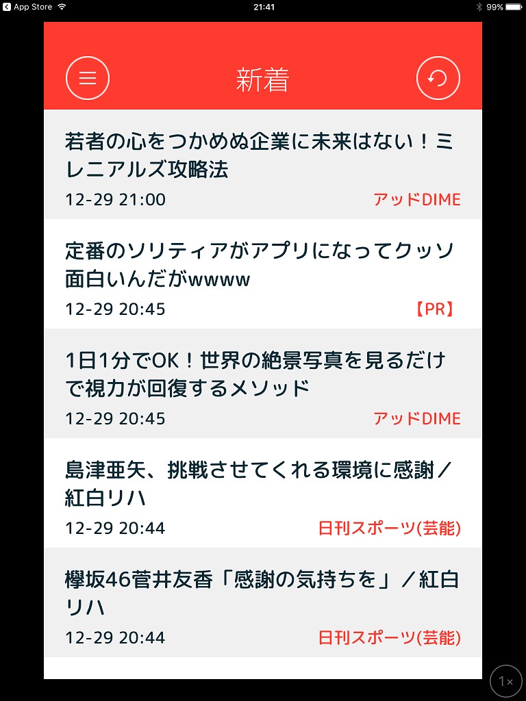 一覧で見ることができるニュースアプリです。もちろん無料なので、気兼ねなく情報を集めることができます。