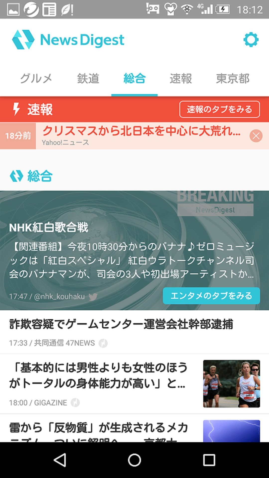 NewsDigestは、ユーザーが住んでいる地域を設定する事で、その地域に関するニュースを速報で通知してくれます。