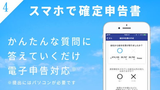 ビジネスを目的としたフィンテック会計アプリ「freee」では、年度末まで記録したデータを元にアプリから確定申告を行うことができます。