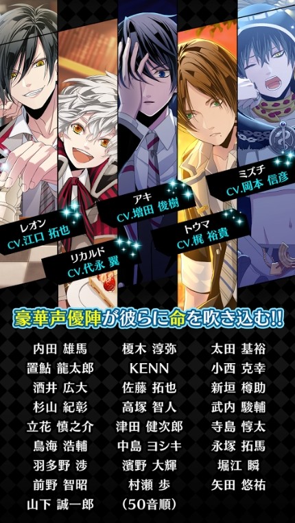 イケメンキャラクターたちには豪華声優たちの声によってさらに魅力を増していきます。是非イヤホンをつけて、耳元でささやく彼らの甘い声を満喫してみてください!
