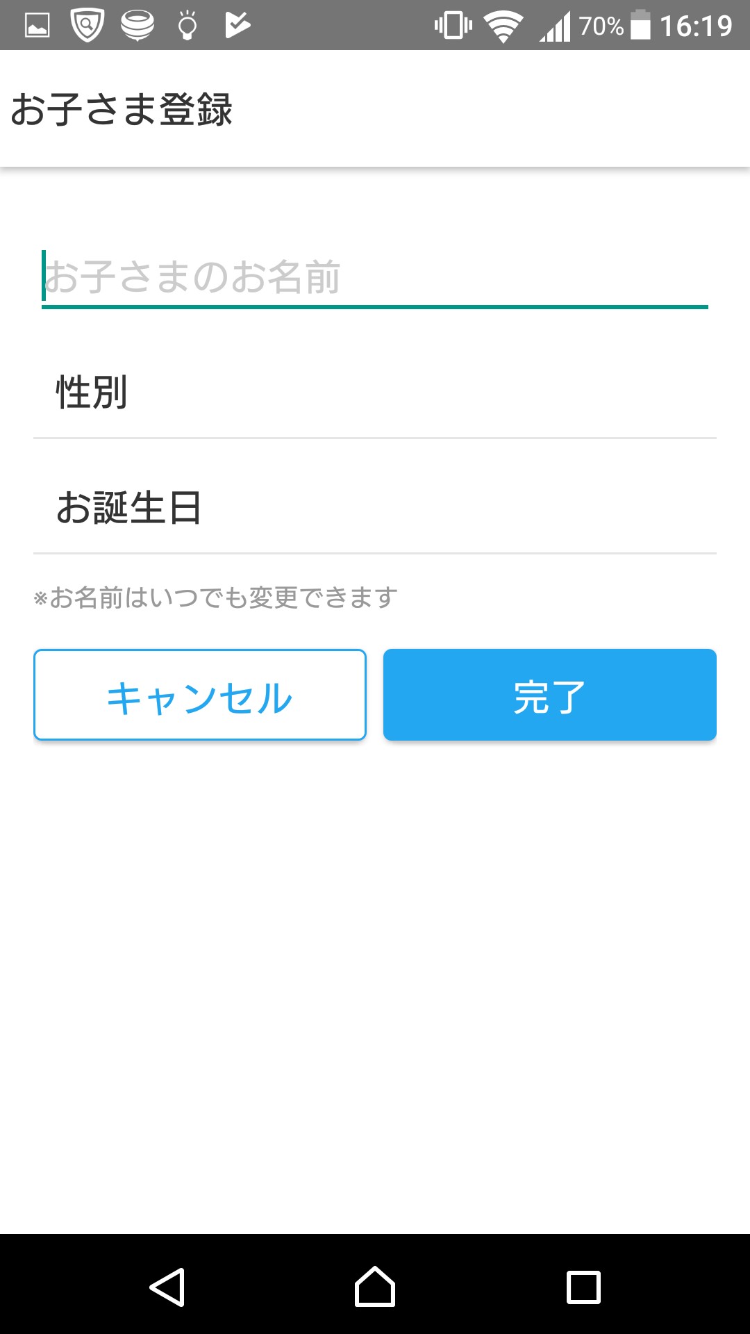アプリを開くと、子供の名前を登録する画面が出てきます。