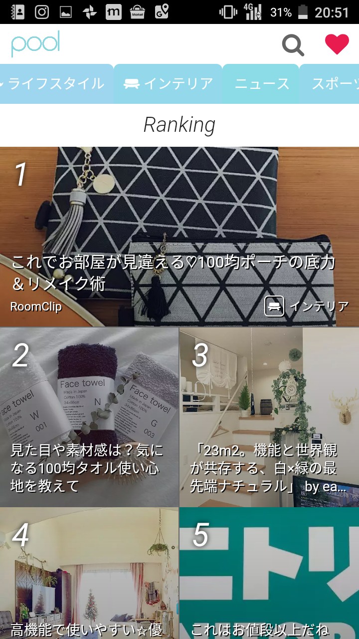 poolでは、女性向け有名ファッション誌やサイト、アプリに配信されているニュースやコラムをまとめて読むことができます。