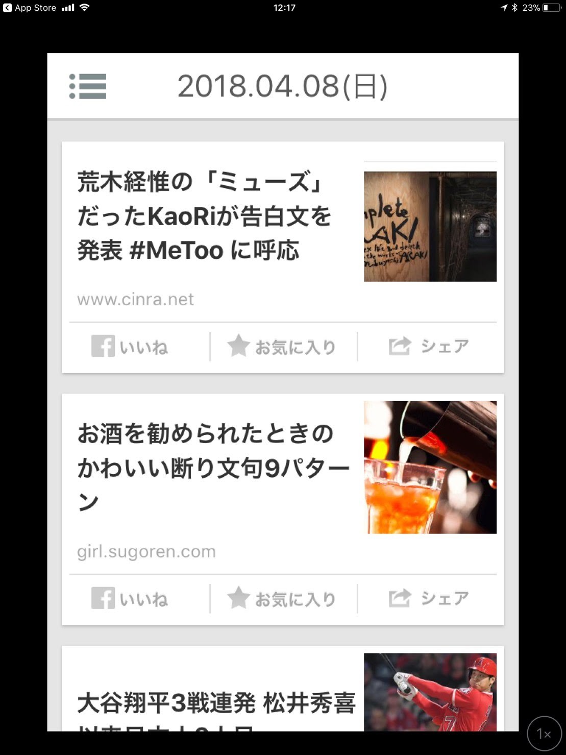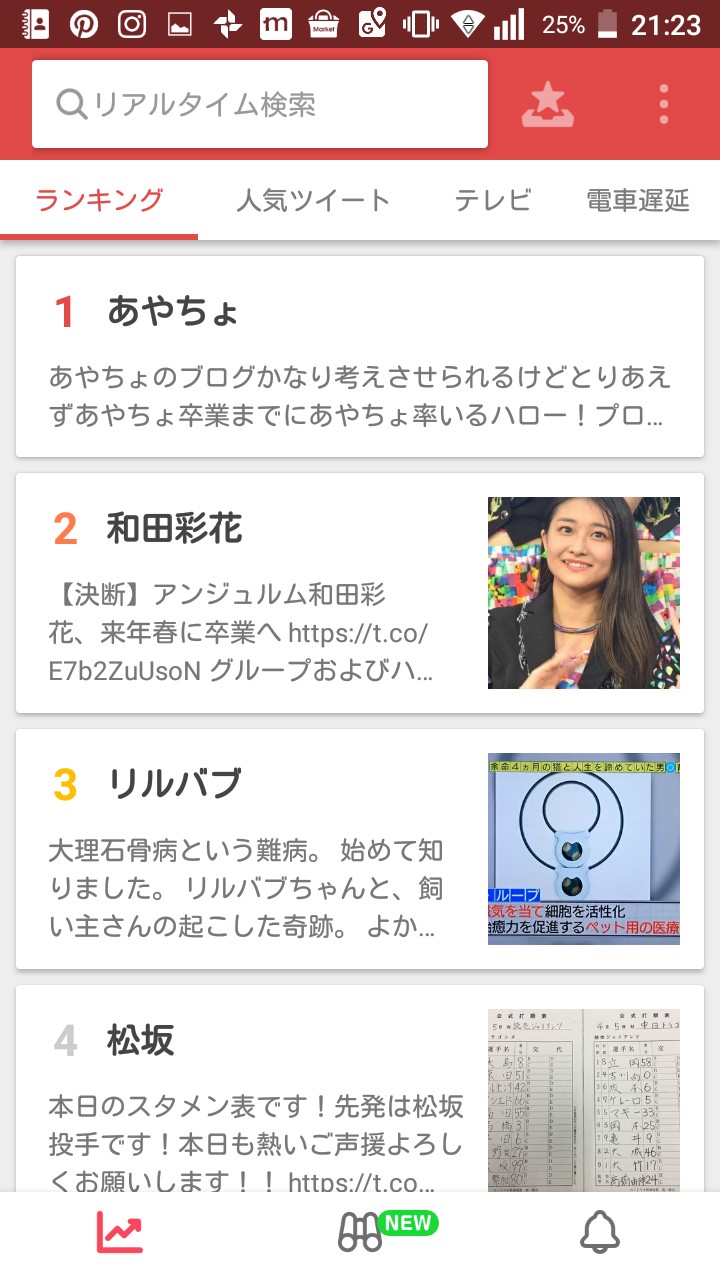 GunosyLITEが各ユーザーの興味に合わせたニュースを配信するのに対して、リアルタイムはTwitterやFacebook上で人気のあるニュースを優先的に配信してくれます。
