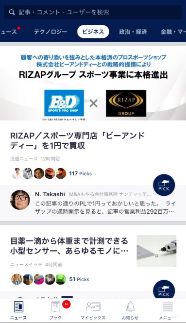 最大の特徴は、各業界の専門家をフォローすることによって、興味のある情報を重点的に集めることができるというもの。様々なジャンルのエキスパート100名以上が揃い、それぞれの記事に解説コメントを加えてくれています。この機能を利用すれば、各ニュースについての専門家の意見を読むことができるので、自分一人では理解できない難しいニュースについても、より理解を深めていくことができるでしょう。