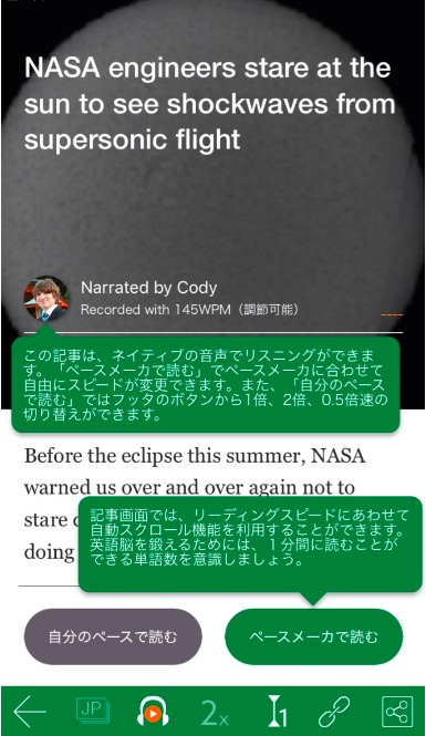 ネイティブによる記事の読み上げを聞くこともできるので、リーディングだけでなく、リスニング学習にも大変役立つニュースアプリになっています。これまで英語学習に挫折してきた方も、興味のある話題を使用すれば、勉強が続けられるのではないでしょうか。