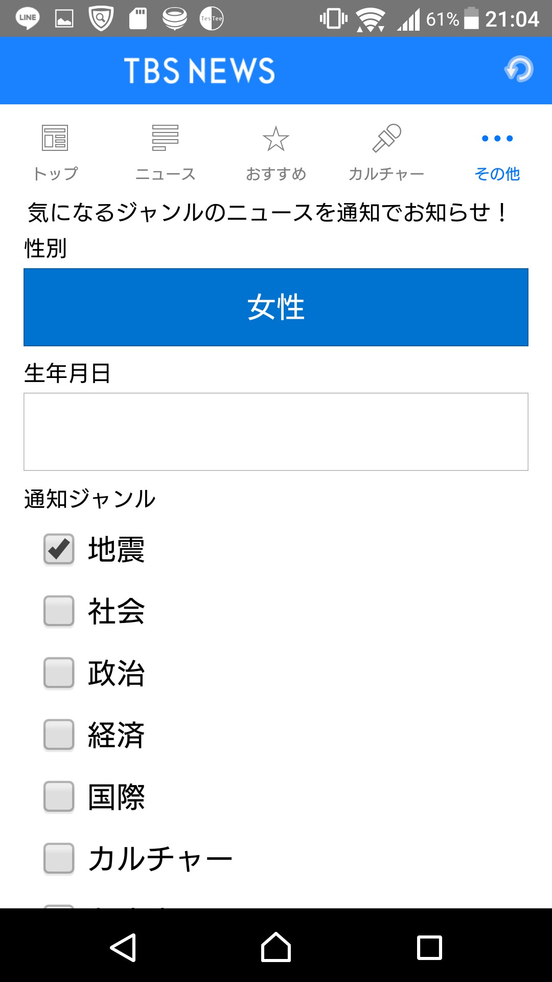 カテゴリーも豊富で、ヘッドライン・地震・社会・政治・経済・国際・JNNニュース・カルチャー・おすすめなどの中から好きなものを選んでニュースを探すことができます。