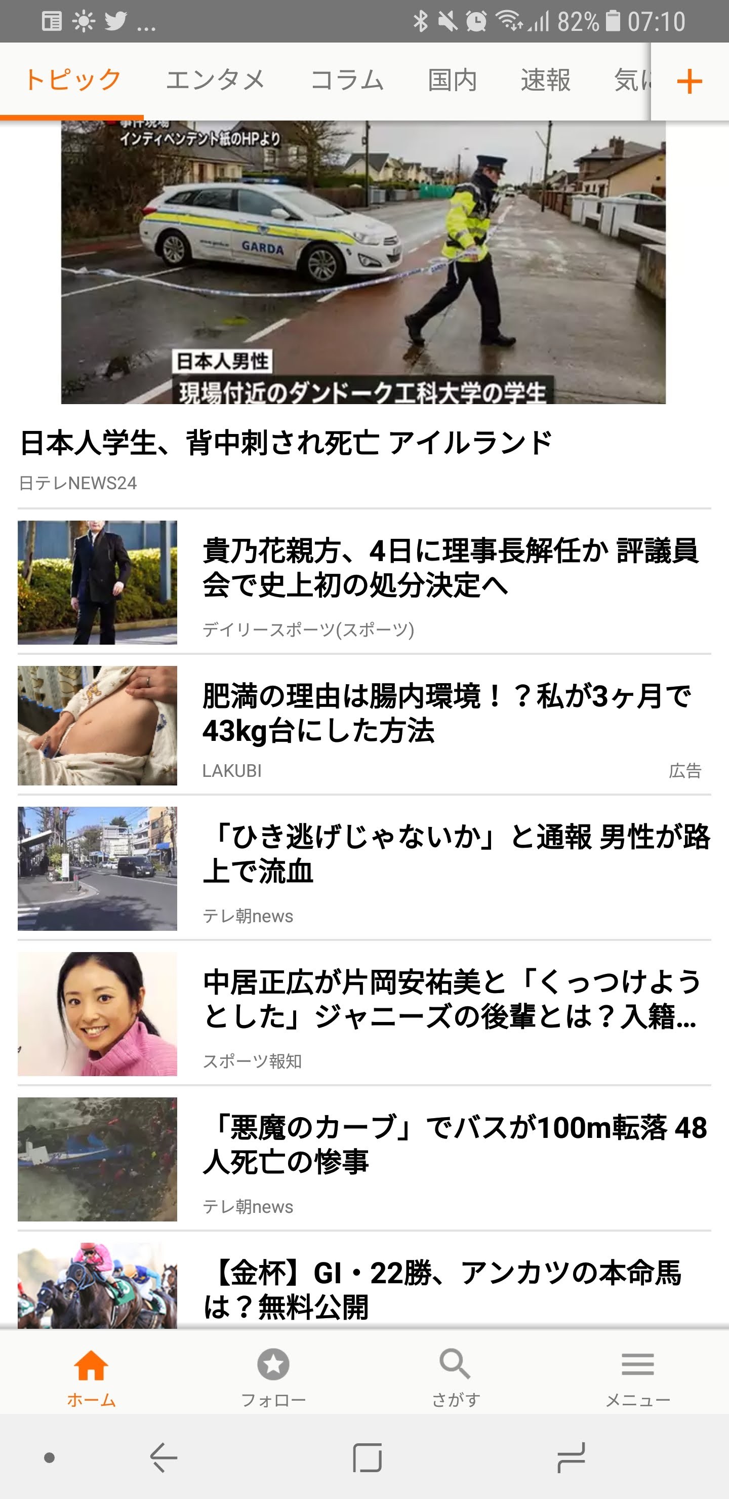 カテゴリはトピック、国内、社会、政治、国際、テクノロジー、気になる、スポーツ、週刊誌、グルメなど多彩な情報を配信しています。さらに興味があるカテゴリは追加することができ、逆にいらないカテゴリは削除することができます。
