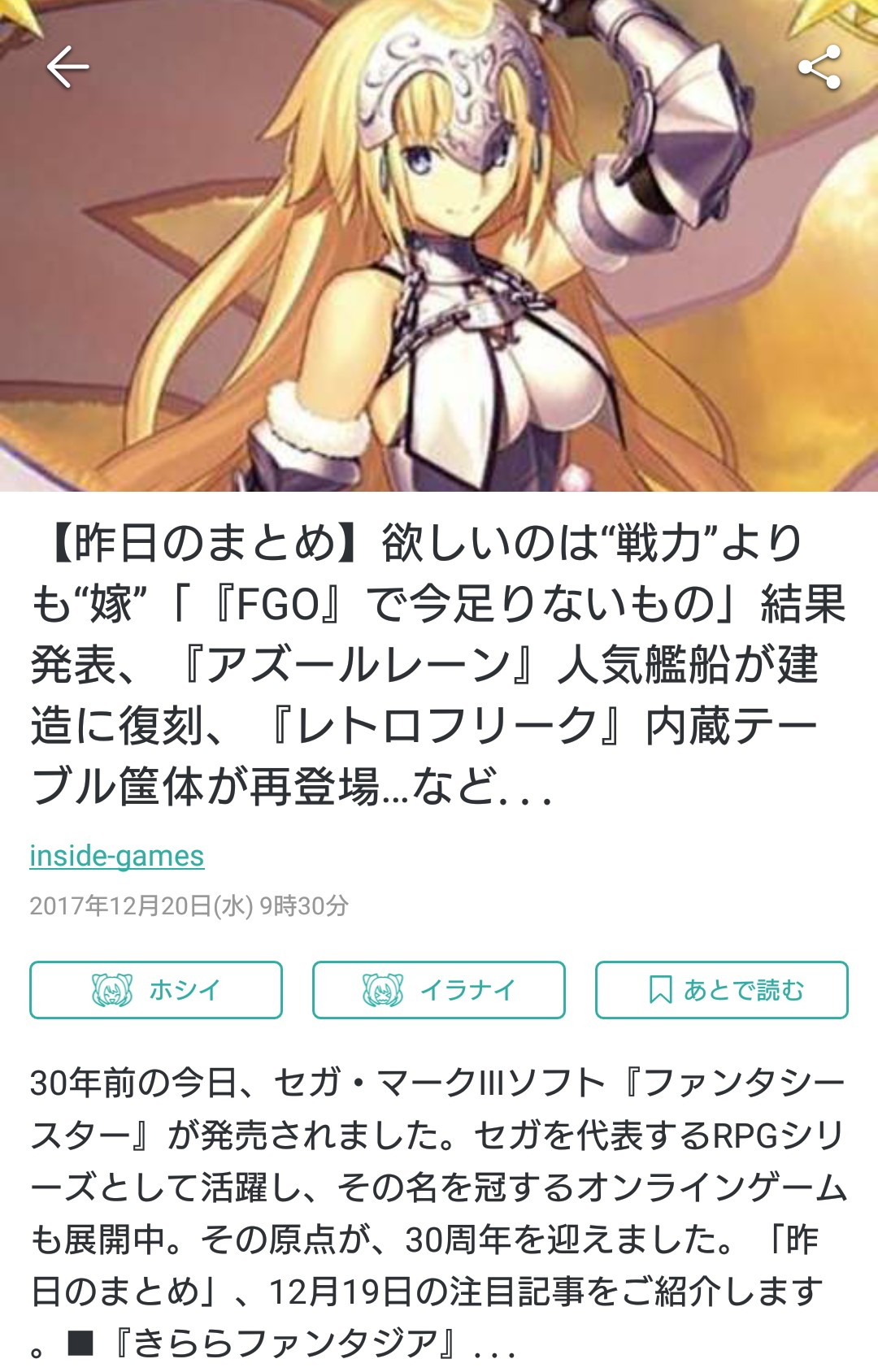 最新情報をいち早く手に入れられるニュースアプリの中でも、アニメやゲーム、漫画に関しての情報だけをチェックしたい人にお勧めなのが、美少女がニュースをお届けしてくれるこのアプリです。アニメ情報はもちろんのこと、特撮・ゲーム・声優情報など、ジャンルごとに細かい情報を多彩に取り揃えており、使えば使うほど、自分好みのニュースがピックアップされるようにカスタマイズされていきます。