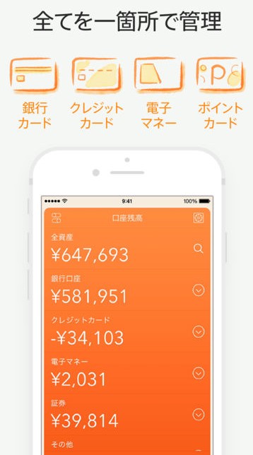 銀行口座やクレジットカード、ポイントカード、電子マネーなど、ユーザーが管理したいサービスを登録するだけで、アプリが自動的に資産管理を行ってくれます。