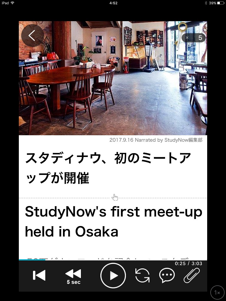 62万ダウンロードを突破した、英語を学びたい人向けのニュースアプリです。ニュースは全てヘッドライン+3行とコンパクトにまとまっているため、英語が苦手な初心者の方でも読みやすいです。英文だけでなく日本語訳も同時に掲載されているので分からないといったこともありません。さらに語彙・英文・ニュース、3つの解説が付属して、英語だけでなくニュースもきちんと学べるようになっています。読み上げはイギリス・カナダ・アメリカ・オーストラリアのネイティブが担当しているので、それぞれの会話の癖も分かって面白いです。