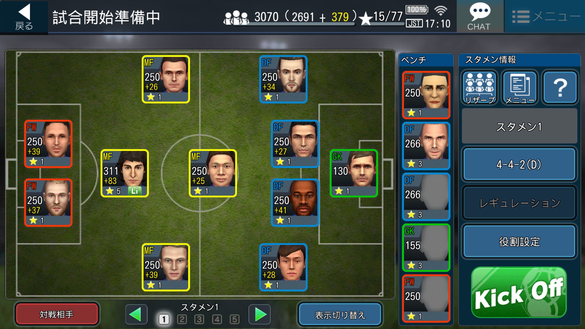 全体練習では、スタメン・ベンチ・リザーブにいる選手全員が選手EXPを獲得することができますよ。