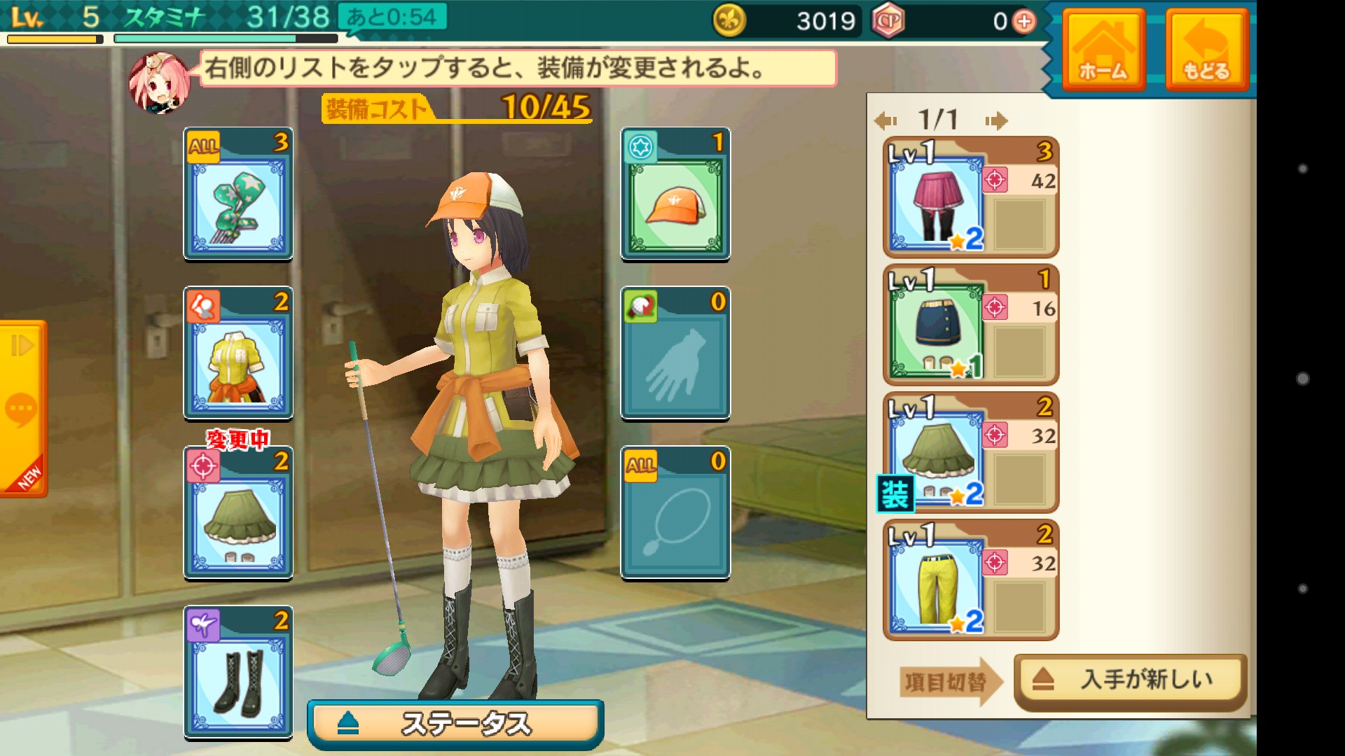 衣装にはそれぞれ能力がついているので、能力を重視するもよし、見た目で着合わせるのもよし、おしゃれにかわいく着飾って華麗にホールデビューしちゃいましょう。