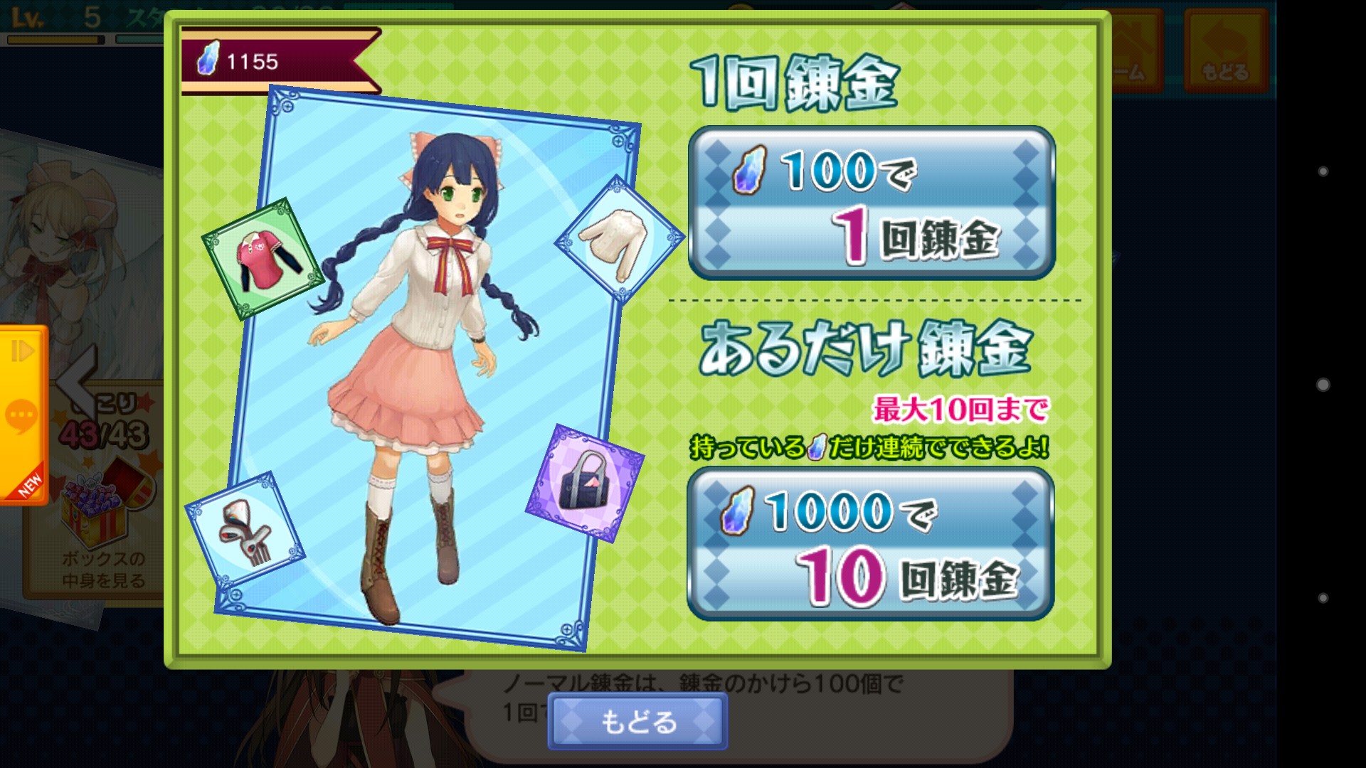 錬金(課金・無課金のガチャ)やプレイでゲットしたおしゃれ装備を合成する事で、どんどん強化することが出来ます。