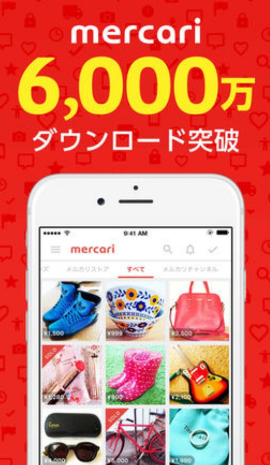 「メルカリ」は日本最大級のフリマアプリで、6000万ダウンロードを突破しています。