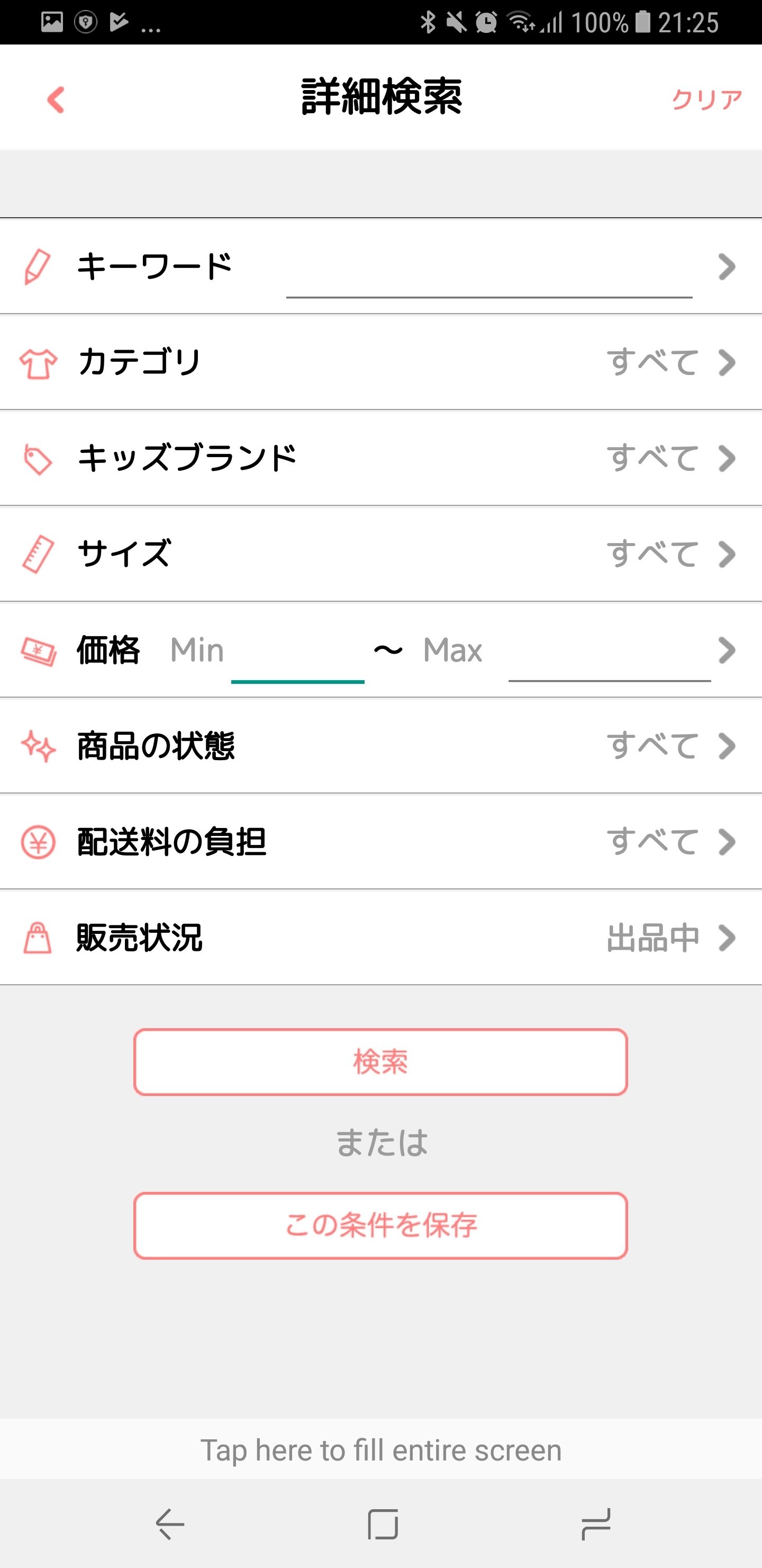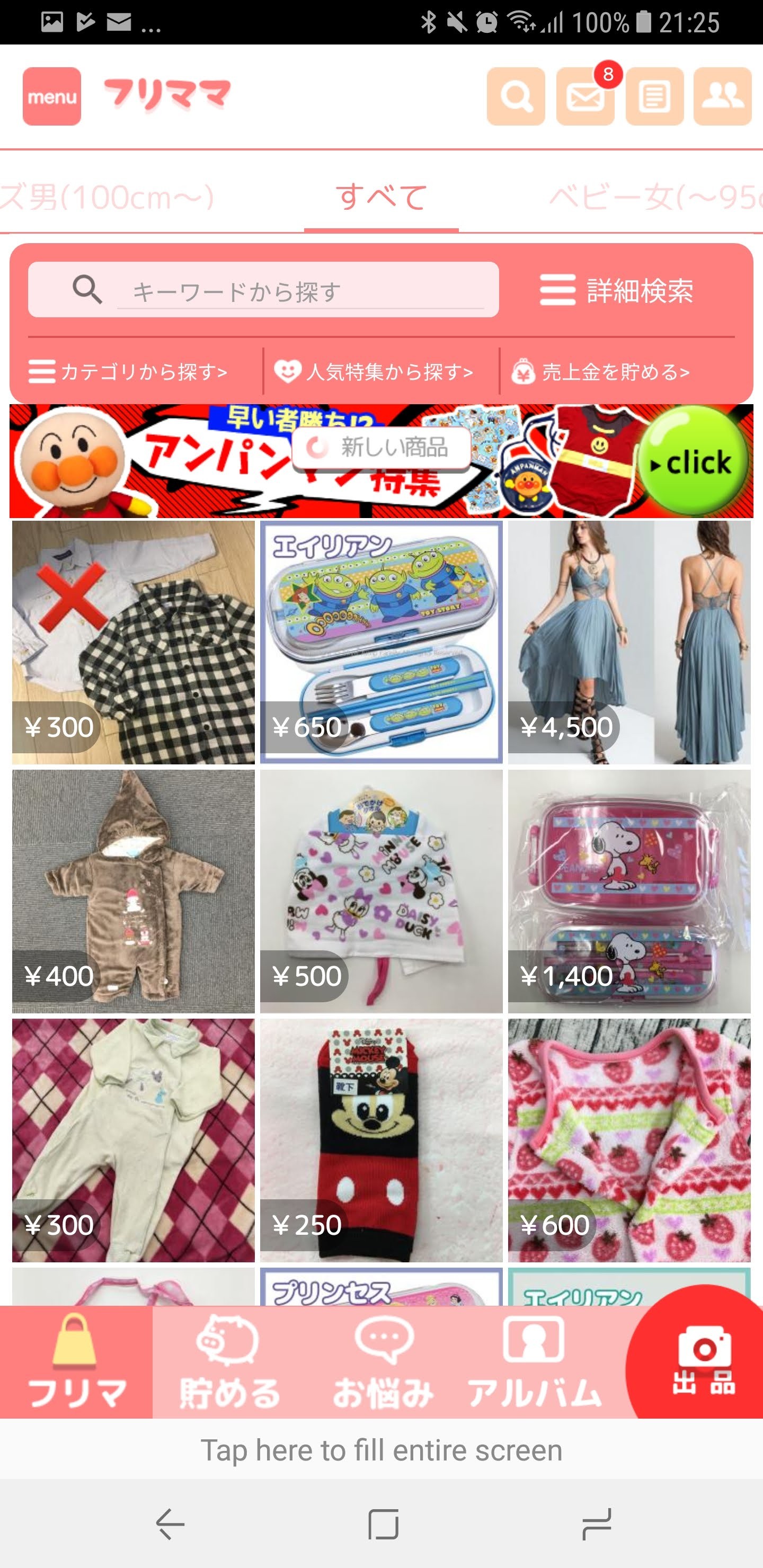 このアプリのメインであるフリマ機能は、基本的には、ベビー用品・キッズ服・子育て用品をメインで取り扱っています。