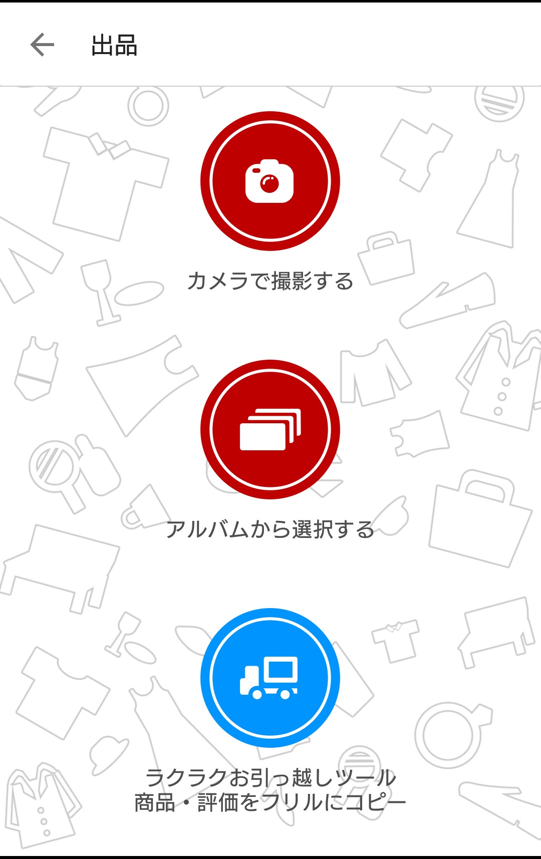 「ラクマ」では、アプリ画面の右下からいつでも商品出品作業が始められます。