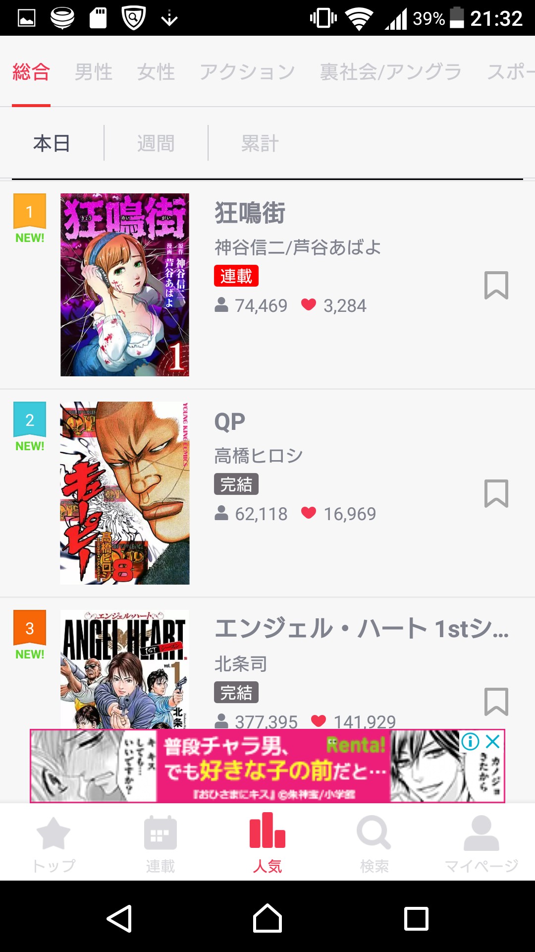 いろいろな観点から見たランキングが表示されるので、自分好みの漫画がきっと見つかるでしょう。