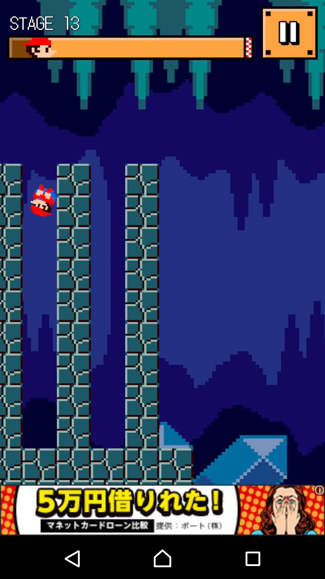 ブロックの隙間から下に落ちてしまうとゲームオーバーになってしまうので、下に落ちないように注意して無事にゴールを目指していきましょう。