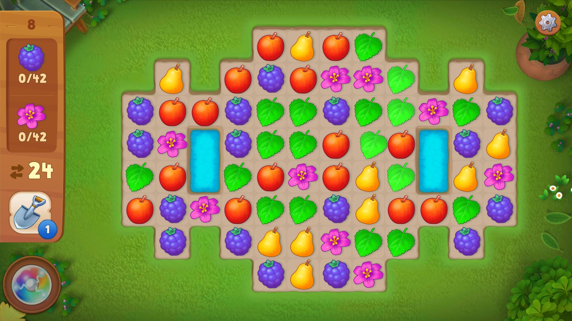 目標は画面左にある、ベーリーや花などを決められた数だけ集めることです。