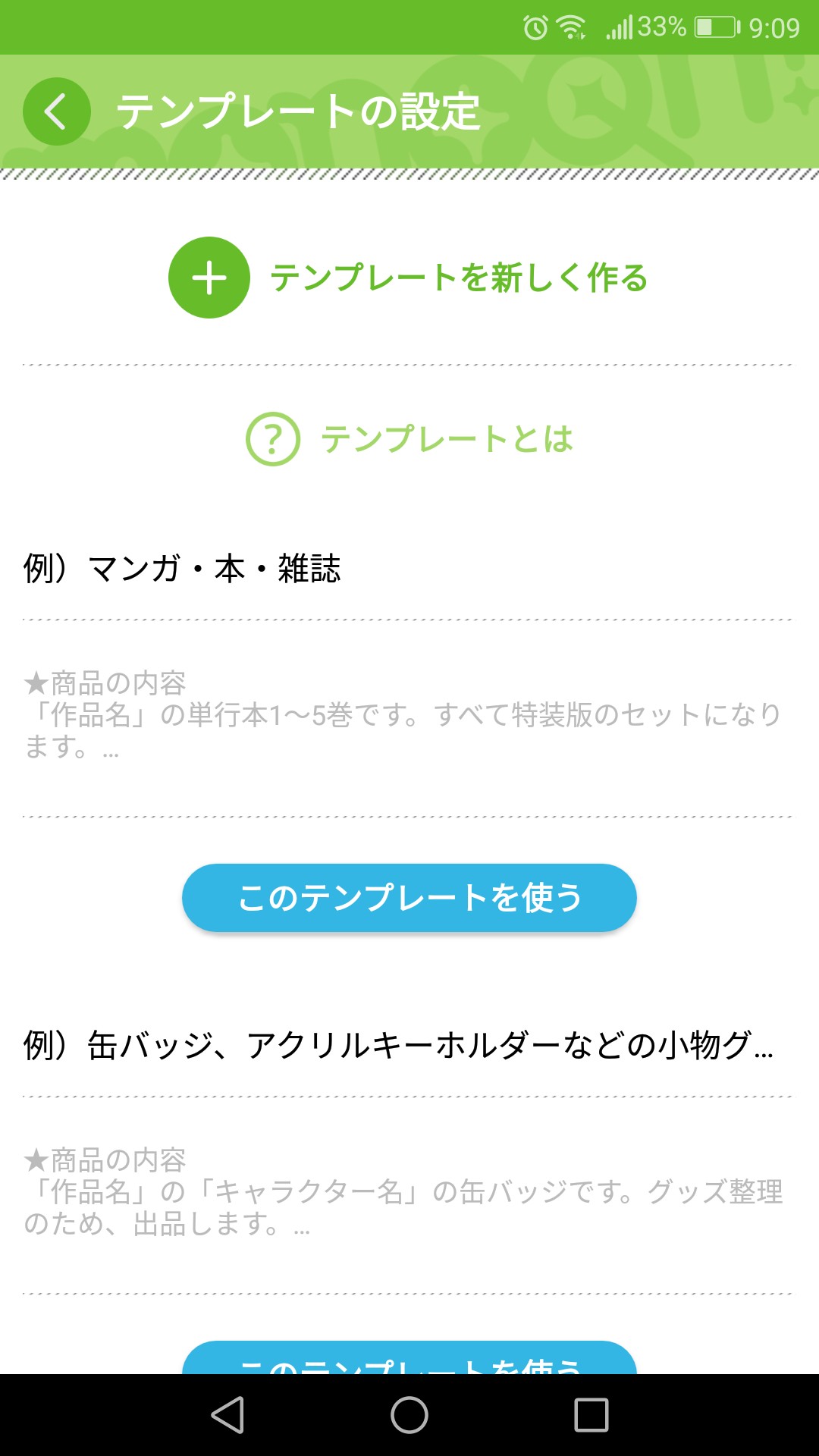 商品情報の入力に便利なテンプレートも用意されているため、自分で一から商品説明を考えなくて良いのもうれしいポイントです。