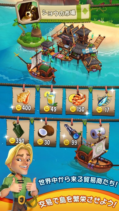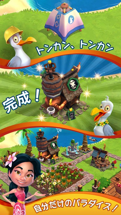 パラダイス・ベイの舞台は南国、あなたはとある島のオーナーになって、島を発展させていくことになる箱庭系のゲームアプリです。雰囲気に合わせて最適化されたグラフィックやキャラクターたちと一緒に、
