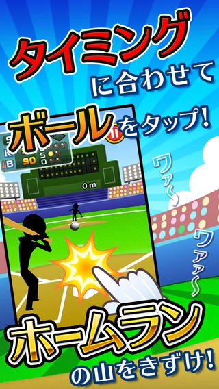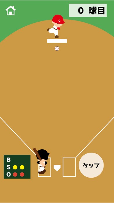 白い枠の中にボールが来たときにタップして打ち返すだけのシンプルな野球スマホゲームです。ときどき変化球を投げてくるので油断ができません、9点差なので100点になるまでピンチの局面は続きます。