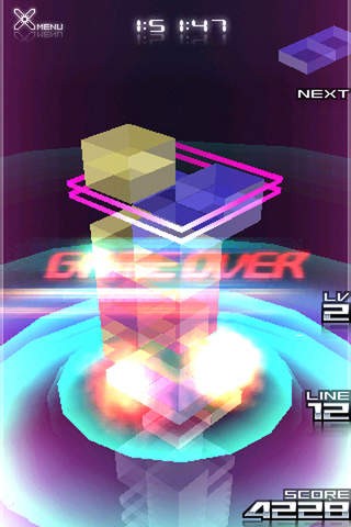 下の青枠が上の青枠に重なってしまうとゲームオーバーで、それまでに稼いだスコアを競います。ランキング上位を狙って繰り返し遊びましょう。無料版と有料版があり、有料版はエクストラモードが追加されています。