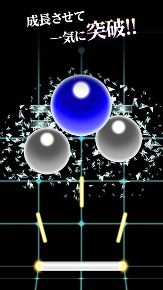 また強化してどんどん世界を広げての繰り返しです。消す爽快感に見とれて青いボールを受け損ねると、制限時間が減ってしまうので気をつけましょう。そのあたりはしっかりブロック崩しです。