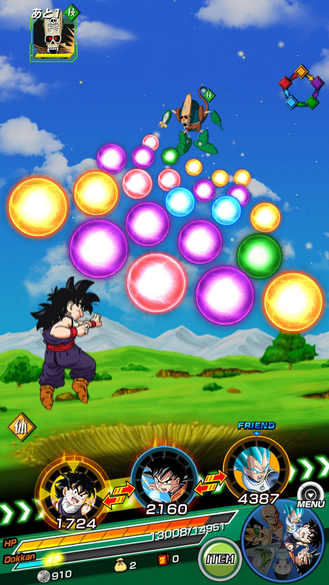 ドラゴンボールZ ドッカンバトルのバトルはアクションではなく、画面上にある気の玉を集めながら敵に向かっていくのですが、その気の玉をより多く集めるほど攻撃力が上がります。