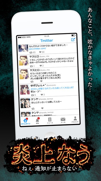あまり体験したくはないのですが、炎上なうはそんな炎上具合を体験できるかもしれないアドベンチャーのアプリゲームです。「できるかもしれない」と言ったのは、人の個性的な男女が炎上しないように、