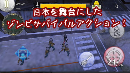 ヘリに直行するも良し、思う存分ゾンビを蹂躙するも良し、二つの楽しみ方ができるアプリゲームです。