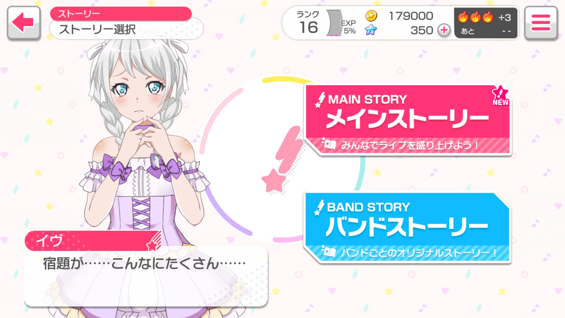 ストーリーには2種類あり、メインストーリーと、それぞれのバンドごとに用意されている書き下ろしストーリーがあります。