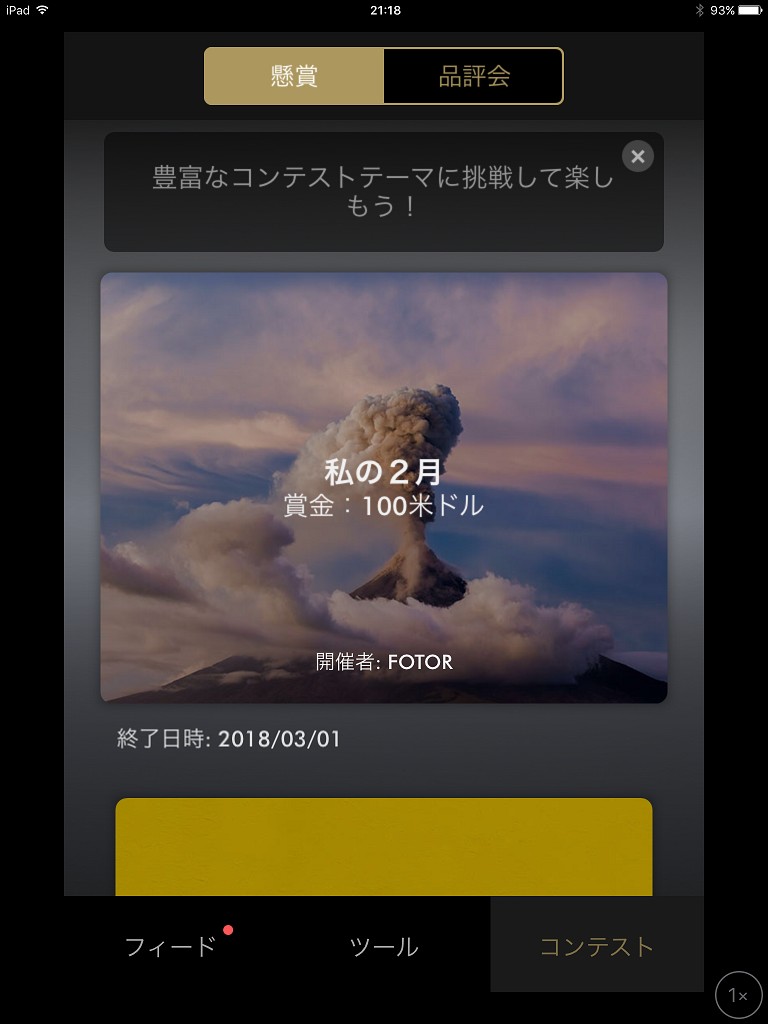 もし腕があがったなと感じたらFotor主催の懸賞付きコンテストに参加してみてはいかがでしょうか。応募はボタン一つでOKです。アプリの機能を駆使して、誰もが見惚れる写真を仕上げましょう。