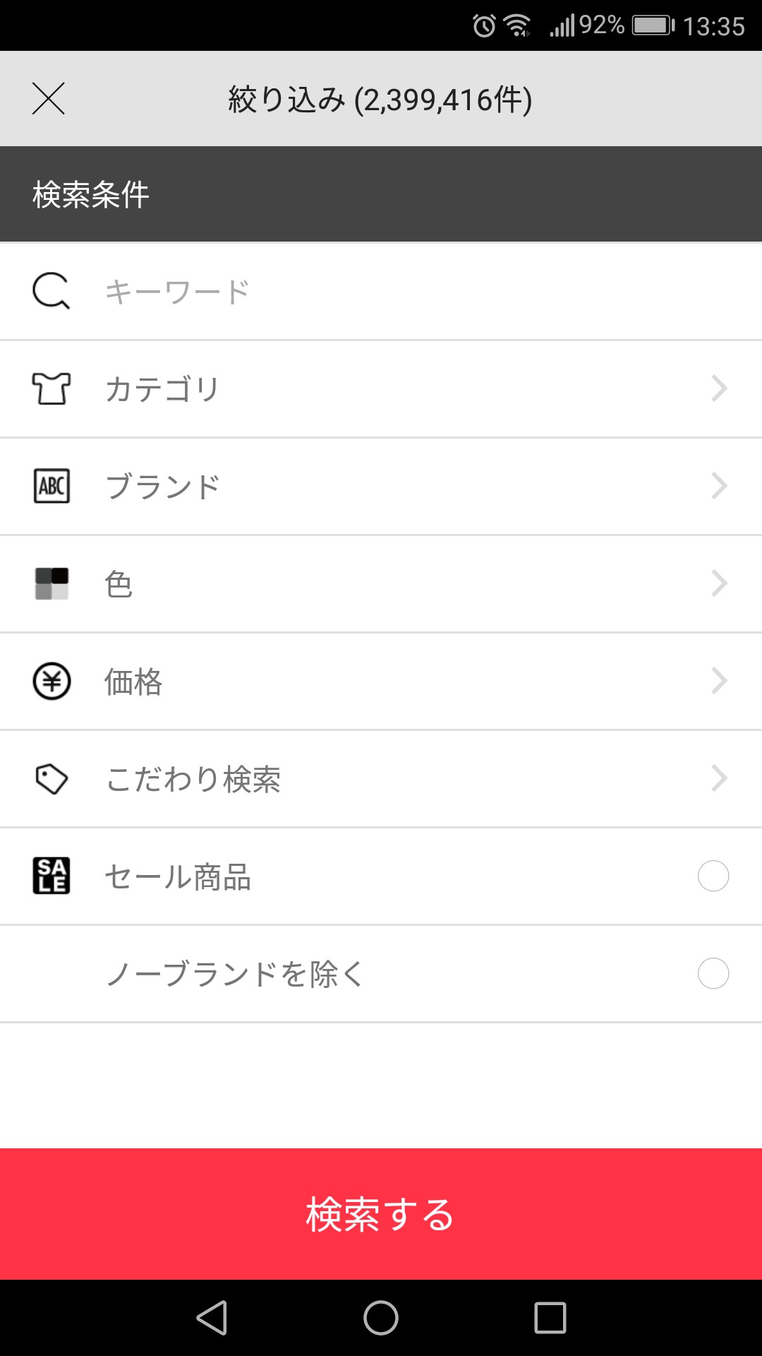 「BUYMA」の魅力のひとつは、さまざまな視点から商品を探せる検索機能です。豊富なアイテムをキーワード、カテゴリー、ブランド、色、価格、セール品などで細かく絞り込みができるので、欲しいものを見つけやすいですし、気に入ったものはどんどん「お気に入り」に登録しておけば、後からサッと購入できるのが便利です。