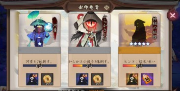 しかし、神秘の妖怪の報酬はSSRの欠片や勾玉などかなりオイシイからやっておきたい封印懸賞の1つです。