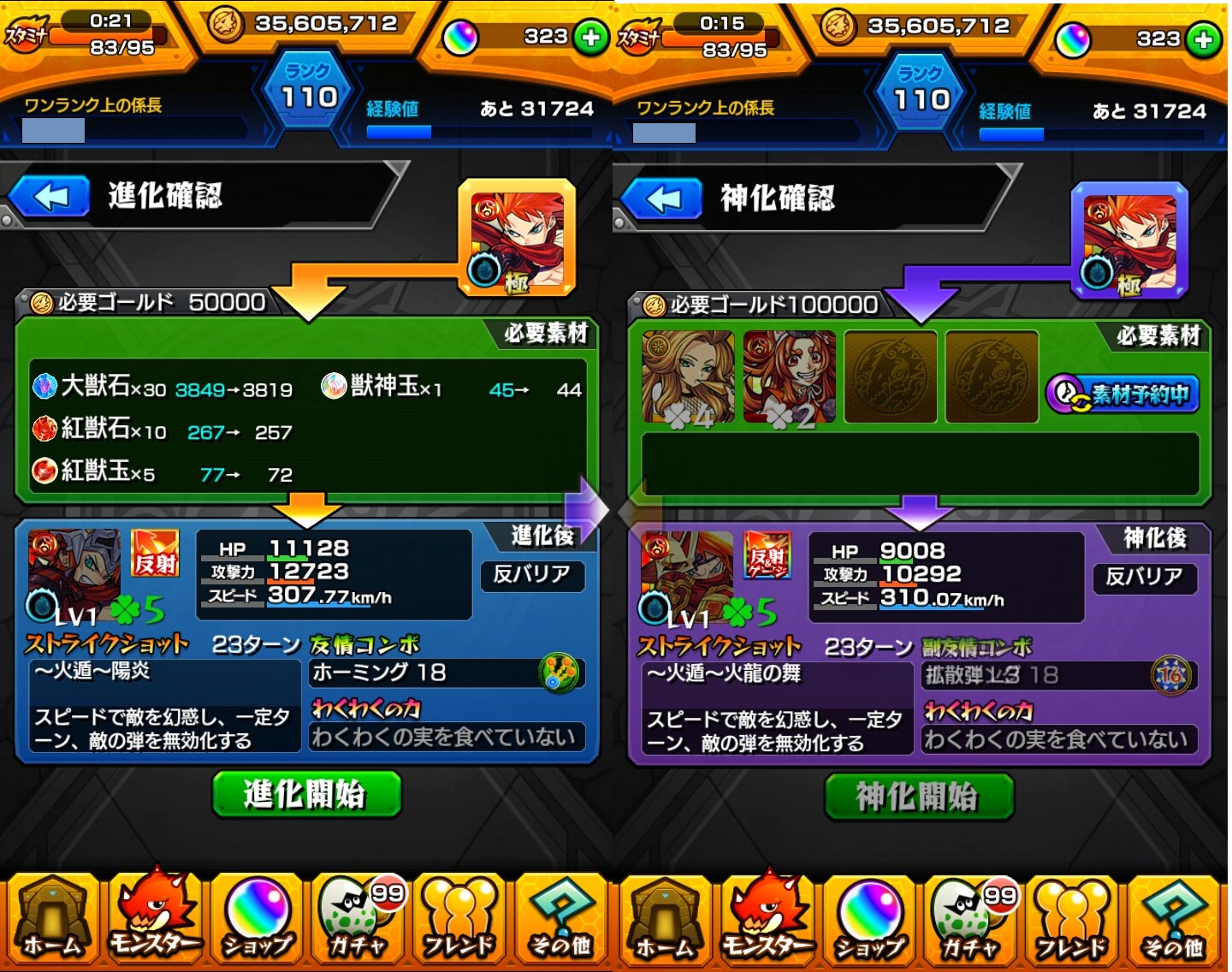 進化と神化のどちらが強いかはモンスターごとに違うので、事前に評価をチェックすることをお勧めします。