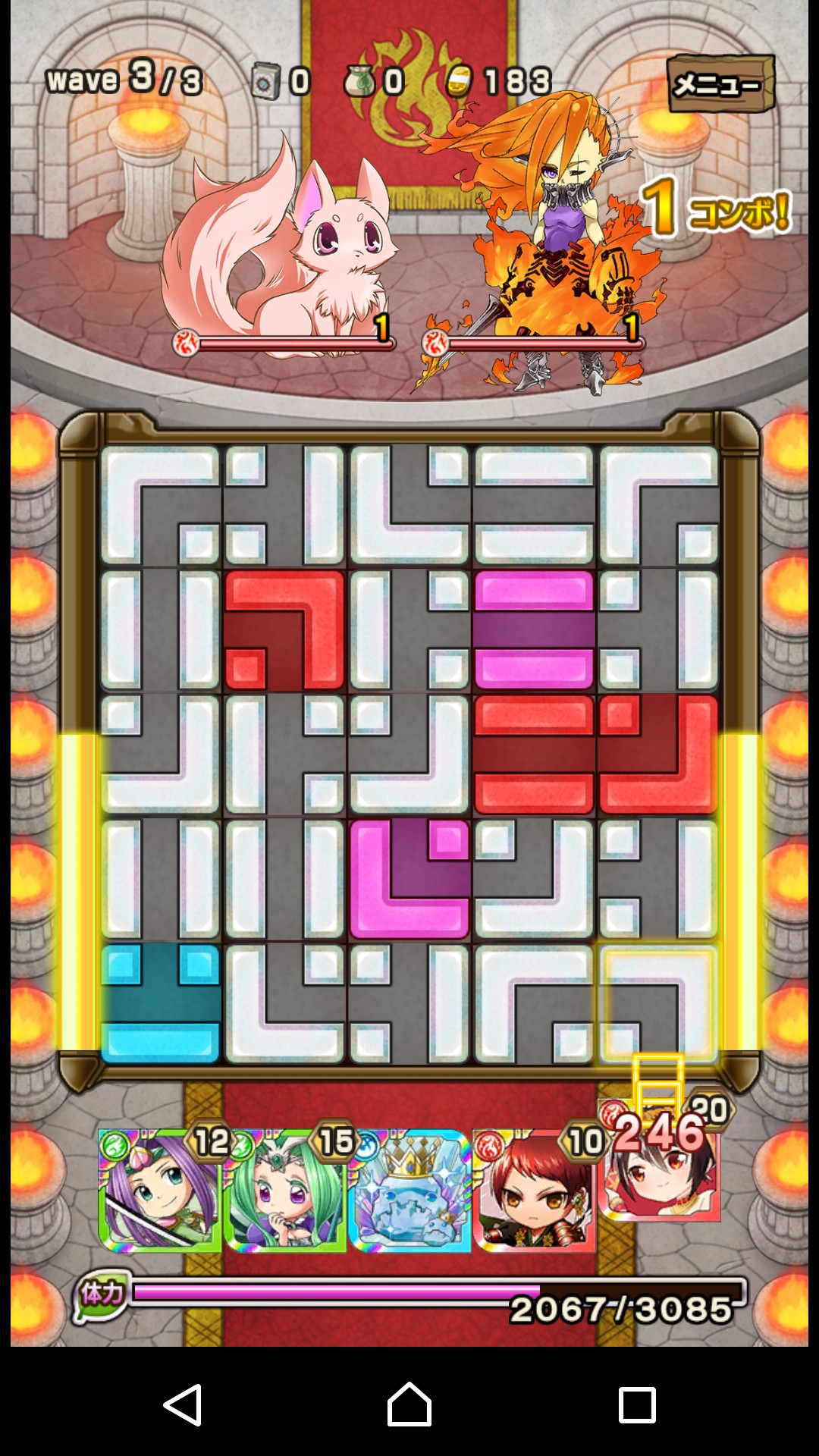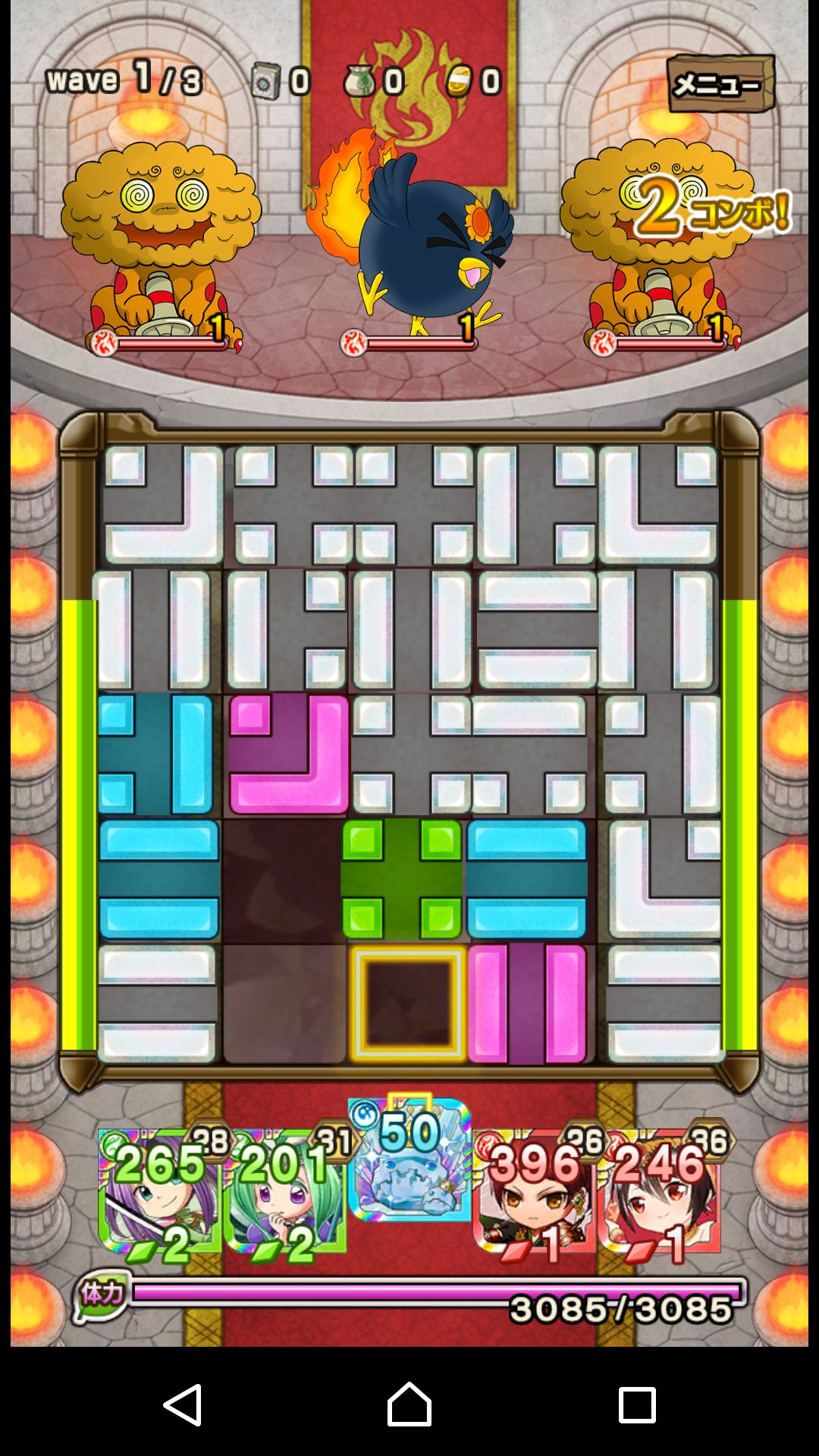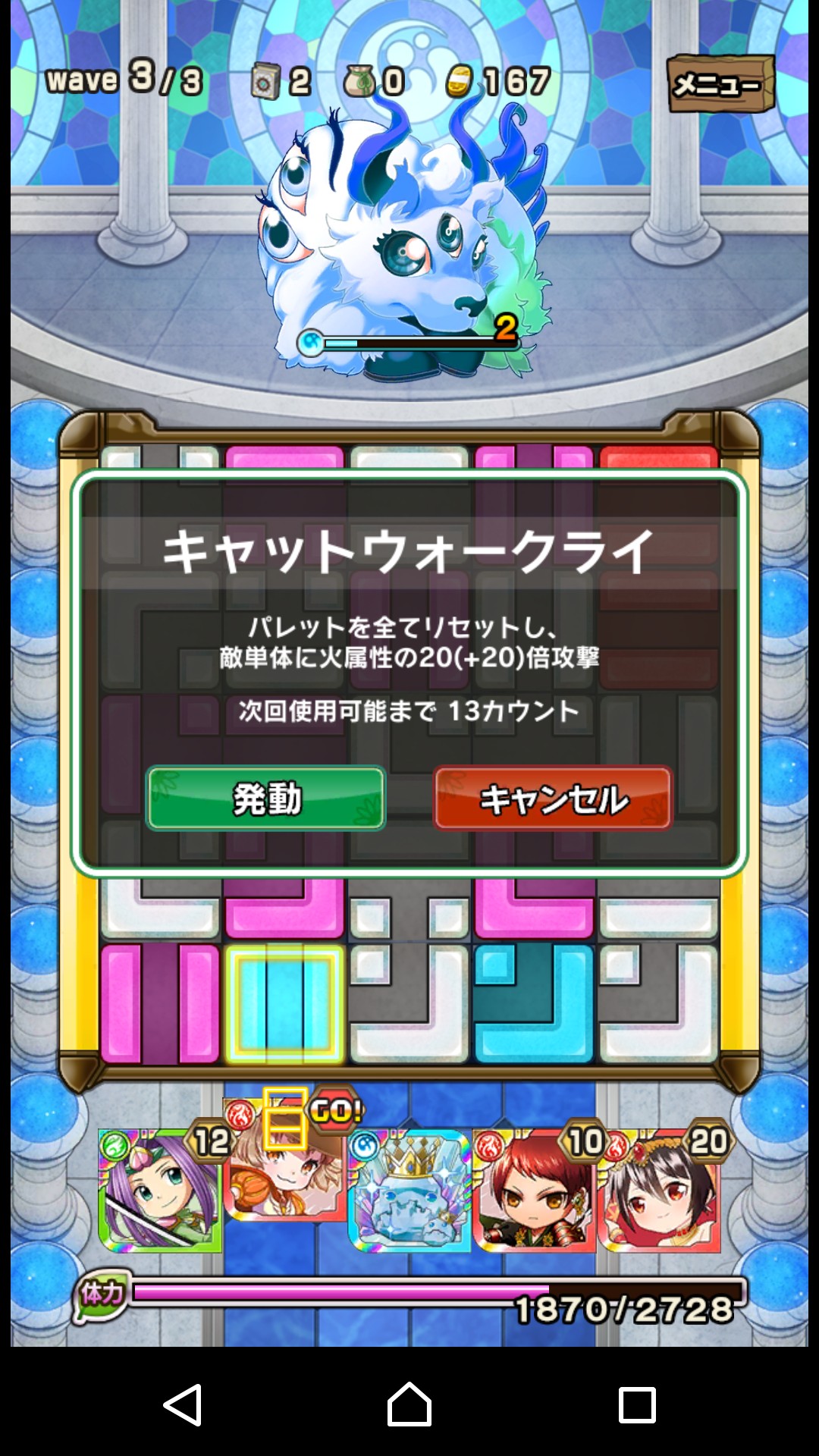 起点のパレットから縦一列に消すと、オトギの攻撃は全体攻撃になってくれるので、複数の敵が現れたときは狙っていってみましょう。