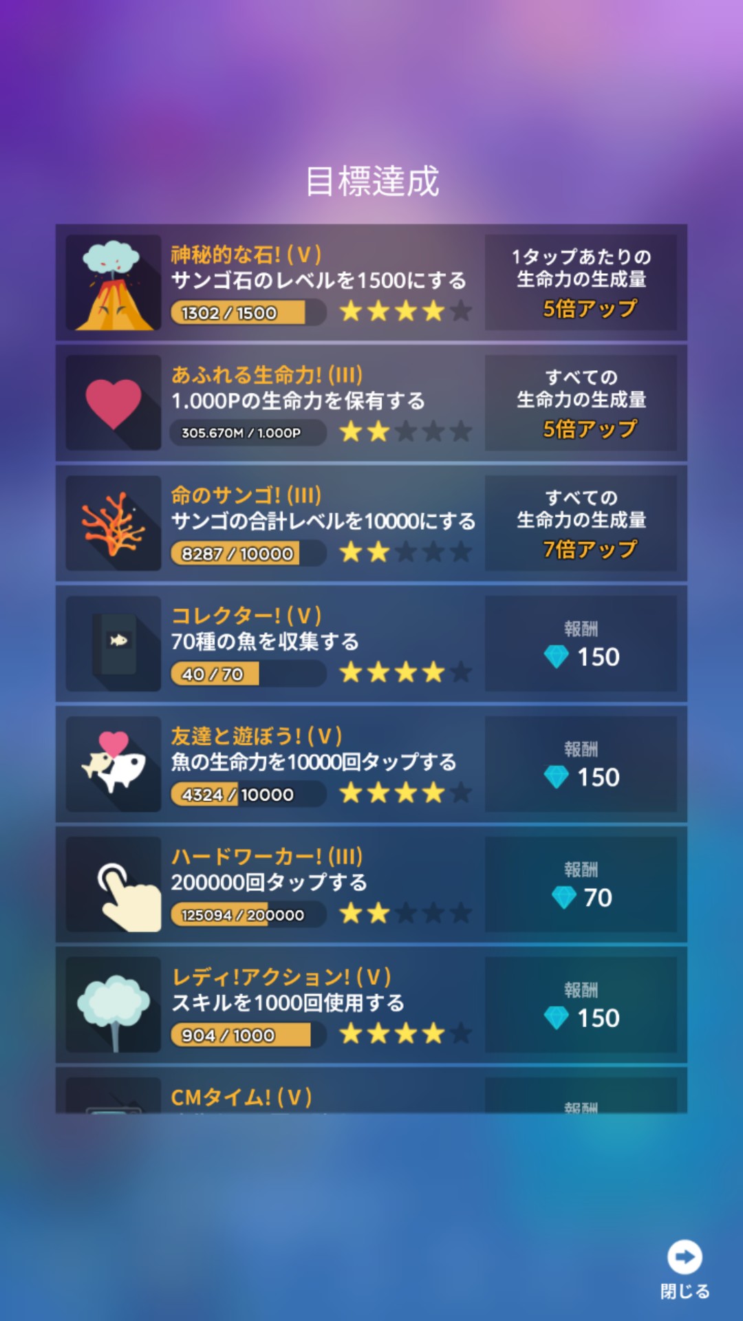 少しずつサンゴを育てつつ、まずはこどくなサンゴ岩のレベル1000を目指しましょう。