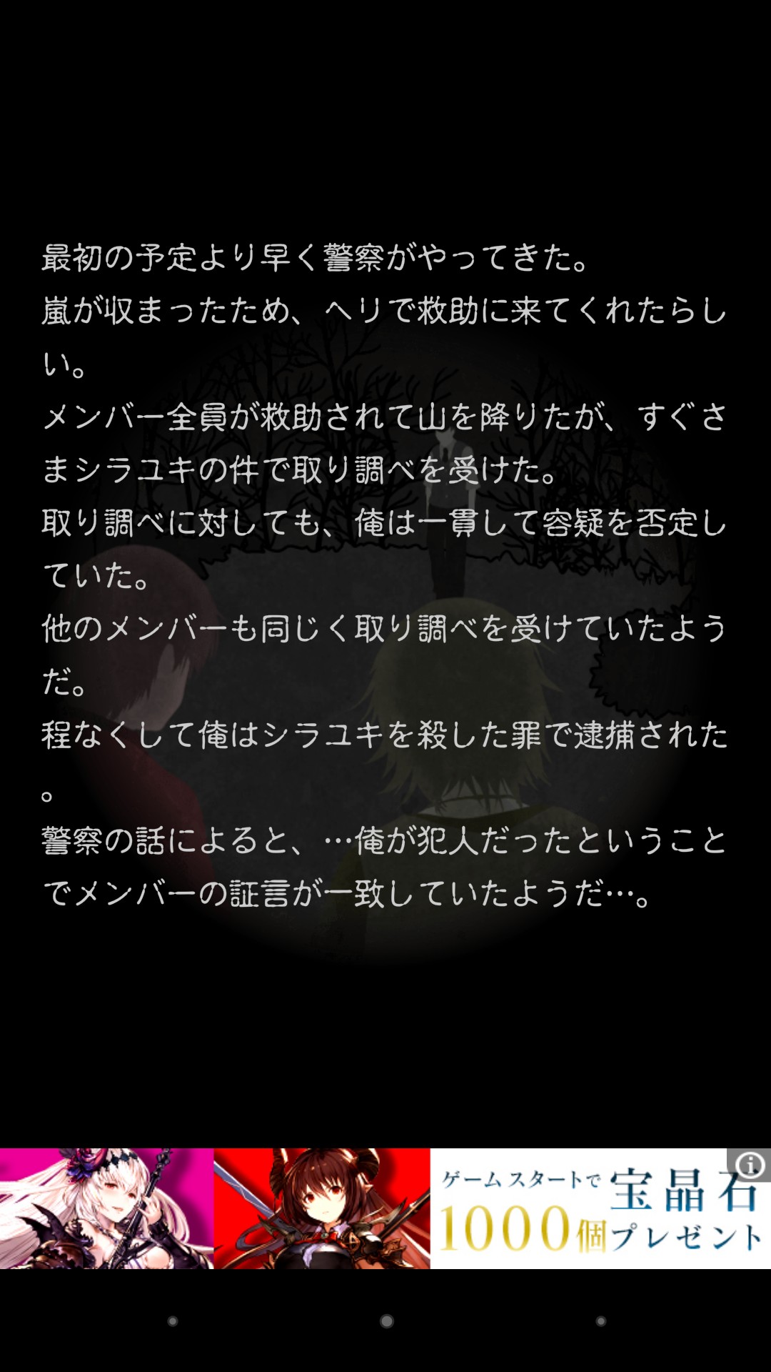 翌朝、コテージの裏側でシラユキの死体を他のサークル仲間が見つけて騒ぎになった。