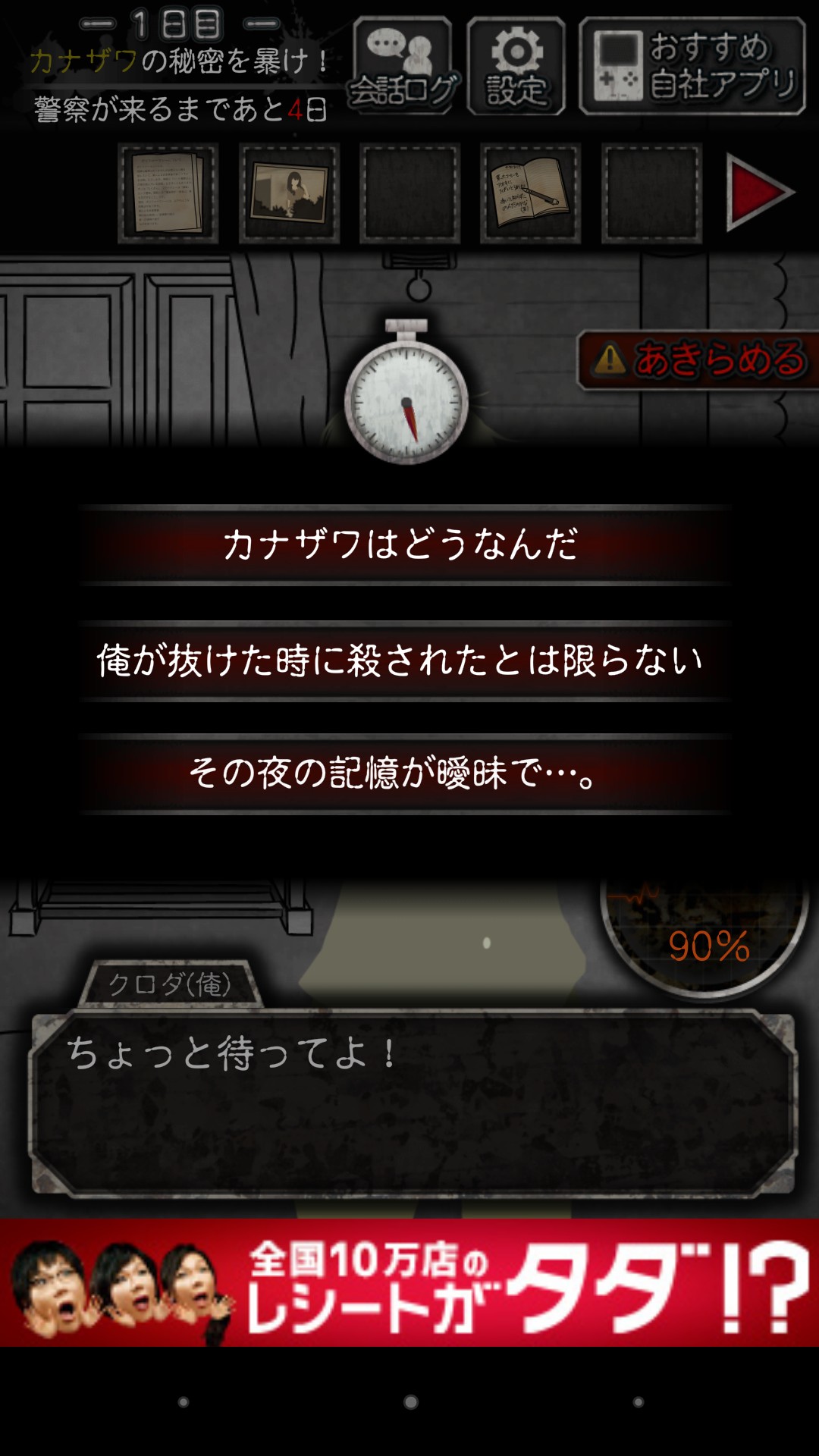 謎解きのノベルゲームは犯人を捜すものが多いですが、犯人は僕です。-謎解き×探索ノベルゲーム-というスマホゲームは自分が犯した犯罪を隠蔽する新しいタイプの謎解きです。