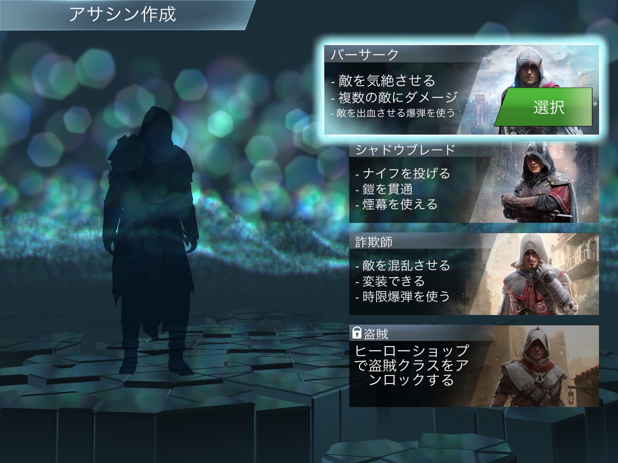 ゲームシリーズでは既存の主人公を動かしていくという形でしたが、このアプリではプレイスタイルから風貌までアサシンをカスタマイズすることができます。