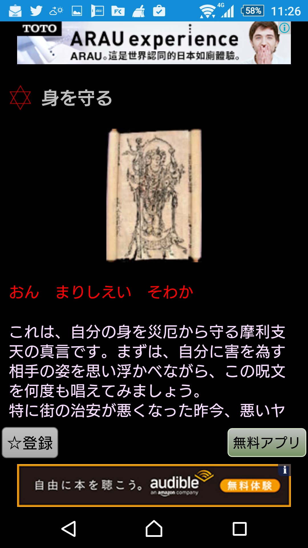 古来から伝わる陰陽の呪文や真言の呪文など、ちゃんとした由緒正しい呪文集で、かなり丁寧に作りこまれています。