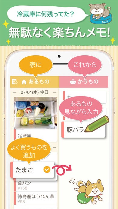 ただの買い物メモであれば紙とペンで充分と思われるでしょうが、このアプリでは「家にあるもの」「買うもの」を入力することによって、買い忘れや買い物の重複を防いでくれます。