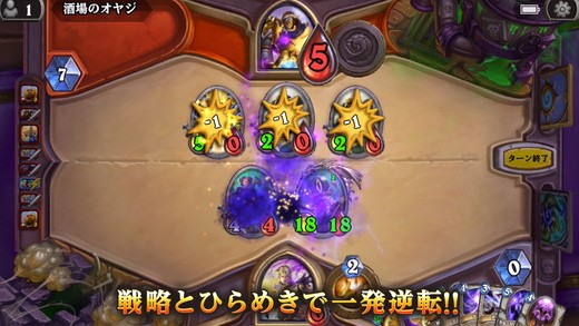 まずは複数いるヒーローの中から一人を選びましょう。そして1対1での対戦を開始します。カードはミニオンと呪文に分かれていて、ミニオンは敵を攻撃してくれる最重要カード。