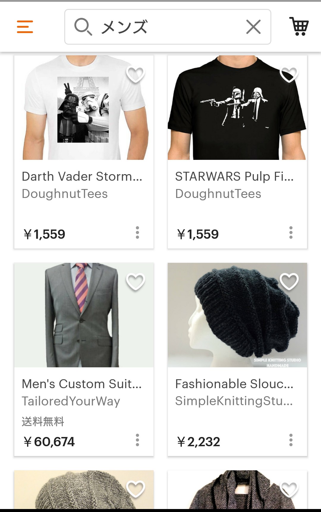ワード検索からメンズで検索をかければ、メンズカテゴリーの商品を一覧で表示することもできるので男性向け商品を手早く探せるのも魅力です。世界中のユーザーが出品しているので英語での説明書きがついているものもありますが、アプリ自体に翻訳機能が付いているので商品概要を把握しながら買い物を楽しめます。