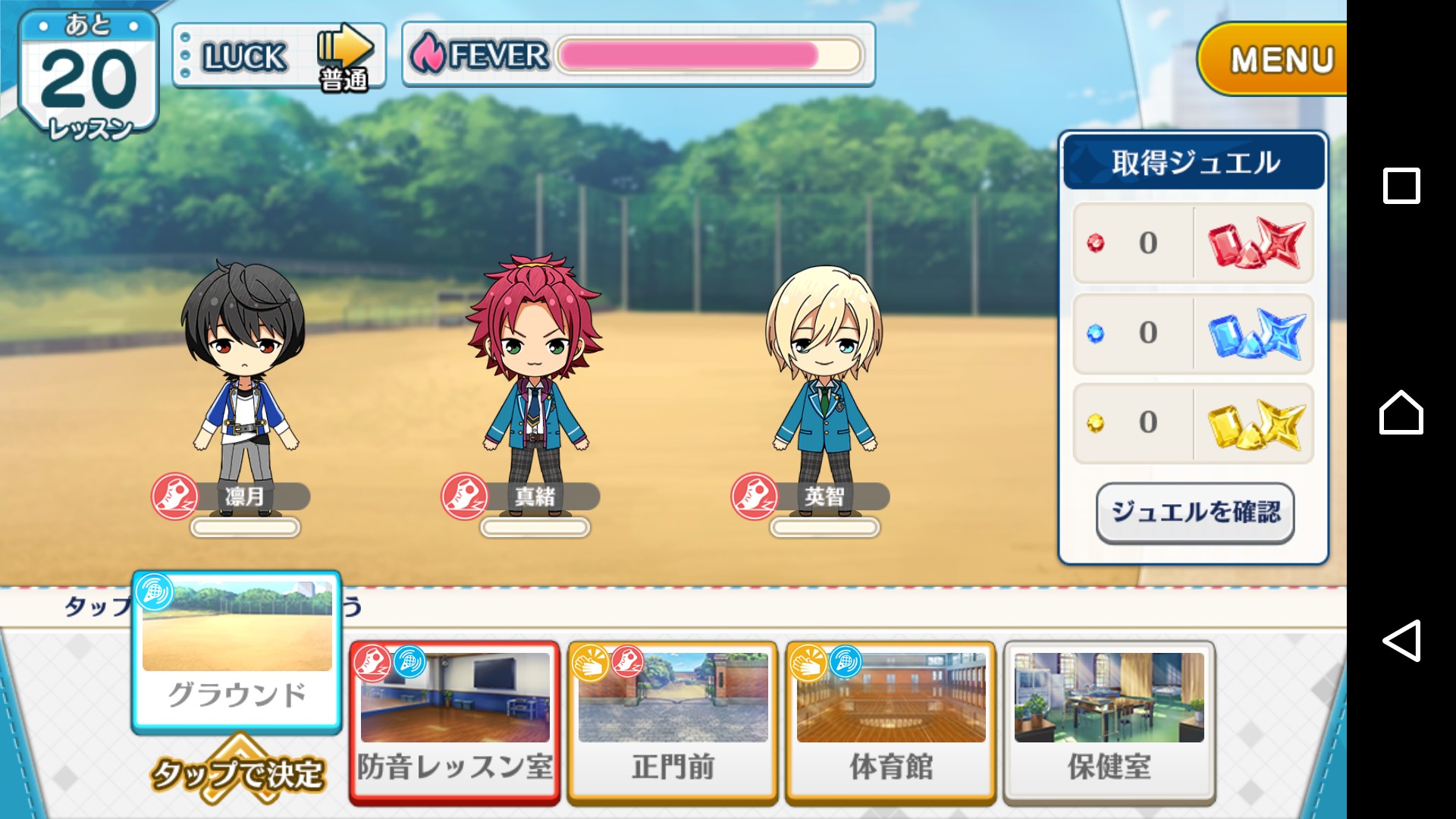 レッスンを終えたキャラクターの頭の上に「!」マークが出たら、イベントのサイン。アイドルの言葉に対し、選択肢のどれかを選ぶことで、アイドルのやる気につながる「FEVER」や運をあらわす「LUCK」が上昇。よりレッスンを有利に進めやすくなります。