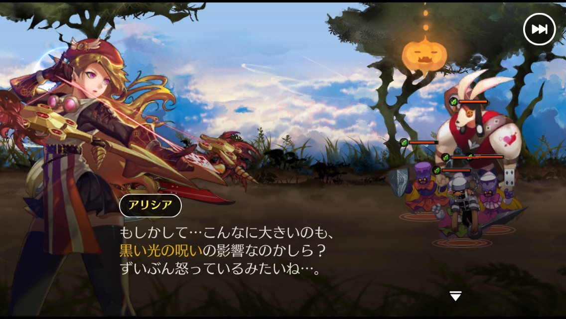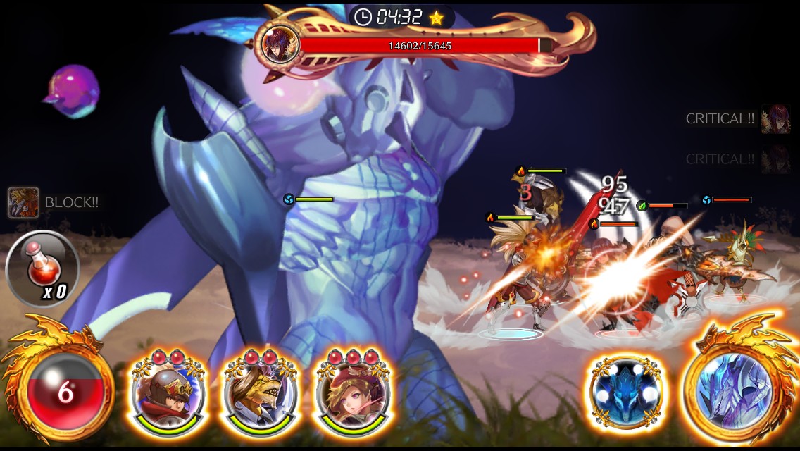 プレイヤーがやるべきことは、画面の下に固定してある味方の画像をどれかタッチしてスキルを発動するか、または右下の巨神召喚を選びます。