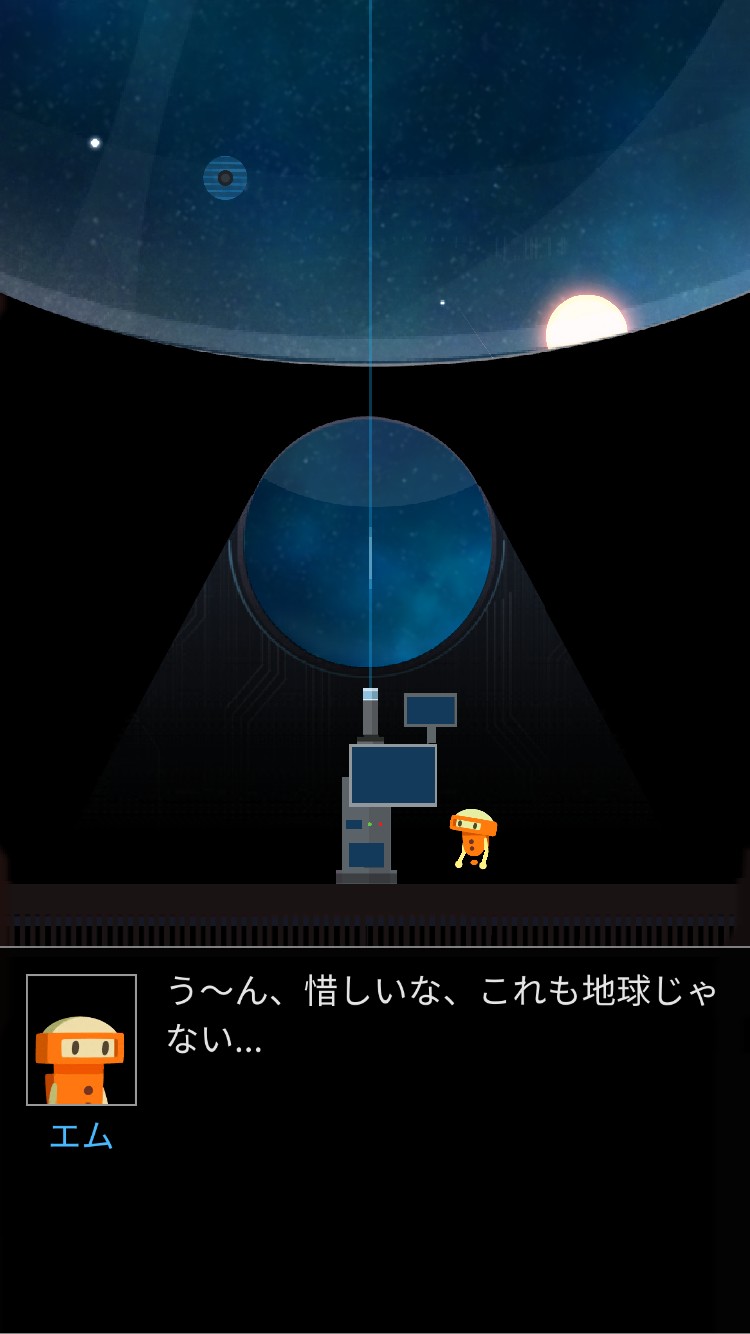 エムには汎用船外活動ロボットという立派な名称が付いてはいますが、船内にはセキュリティや操縦に関わるアクセス権限を持った研究者たちがいないため、残念ながら現在のエムには望遠鏡を覗き星を探しだすことしかできません。