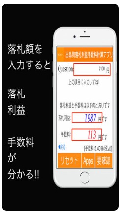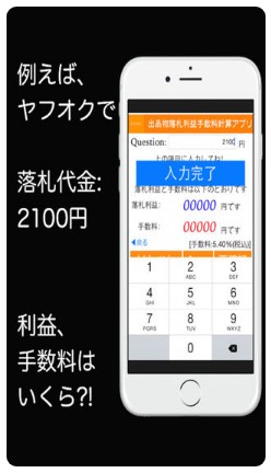 「出品物落札利益手数料計算機アプリ」の使い方はとても簡単で、落札・販売金額を入力するだけです。