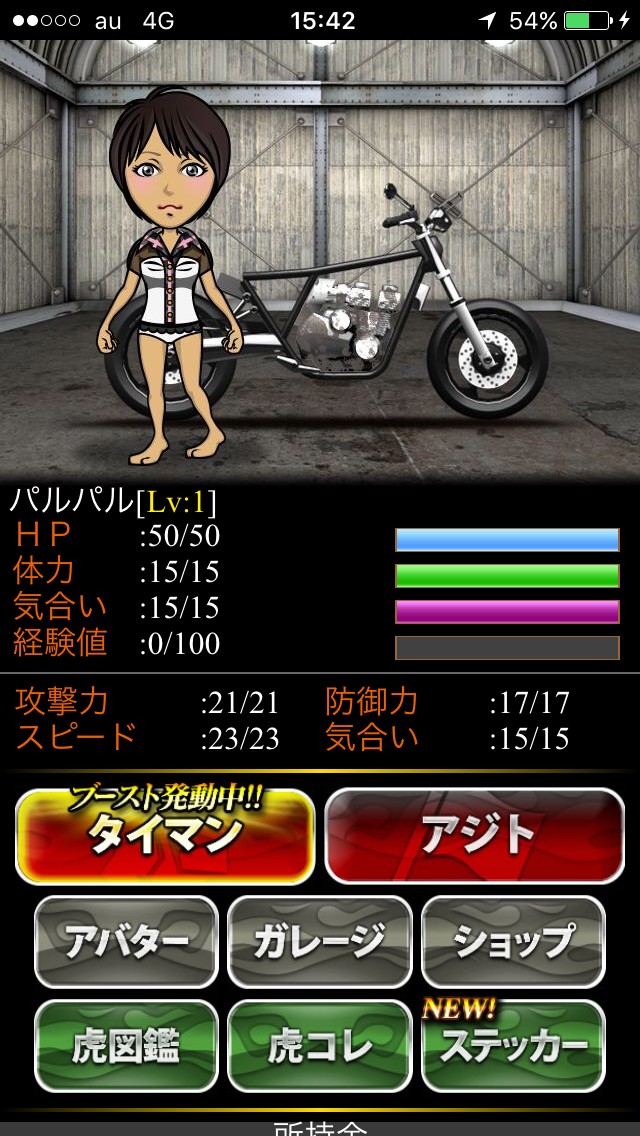 プレイヤーは性別と名前を決めて単車を手に入れます。私は性別を女にしてみました。まったくヤンキーではない、